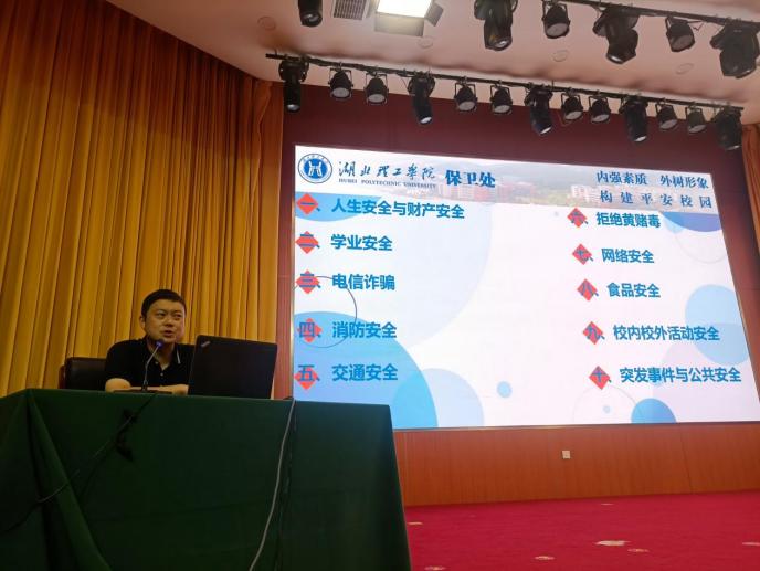 9月10日至14日为期一周的,一年一度的2024级新生线下安全教育课在学术交流中心208报告厅如期开展。167net必赢韩幸、黄春华、卢明、温莉4位同志和下陆区公安分局团城山派出所的民警在开学第一周为全校新生、全体副书记、辅导员们讲好14场校园安全第一课,帮助师生将安全知识“入脑入心”。全校所有新生参加了安全教育课,做到安全教育第一课新生实现全覆盖。