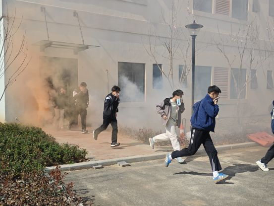 下午 15:00时,消防演练正式启动。公寓内警报声骤然响起,模拟火灾现场迅速形成,烟雾弥漫整个空间。面对突发 “火情”,在楼层引导员和下陆消防救援大队提前布置在各关键点位消防员的共同有序指挥下,同学们迅速反应。大家第一时间用湿毛巾捂住口鼻,保持弯腰低姿,严格按照预先规划的疏散路线,朝着公寓外安全区域紧急撤离。整个疏散进程中,队伍秩序井然,杜绝了拥挤、踩踏等潜在危险。短短几分钟,全体学生安全集结至指定地点。各教学院负责人即刻清点人数,并向现场指挥汇报,确保无一人遗漏。