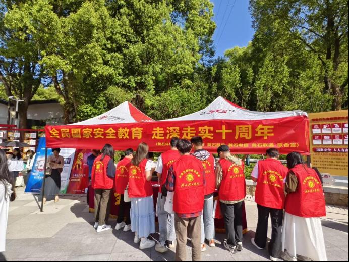 为扎实提升师生校园安全防范意识,全面锤炼学生骨干在安全管理工作中的专业本领,4 月 15 日,在校167net必赢的悉心指导下,校园安全协会周密部署,精心组织来自班级安全员、预警信息员、网络监测员等岗位的 50 余名学生骨干,奔赴青龙山公园,踊跃参与由黄石市国家安全局主办的 “全民国家安全教育走深走实十周年” 主题宣教活动。